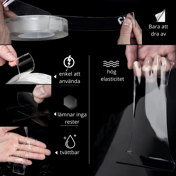 Nanotejp – Dubbelhäftande, transparent & återanvändbar. Den mest allsidiga tejpen som finns!