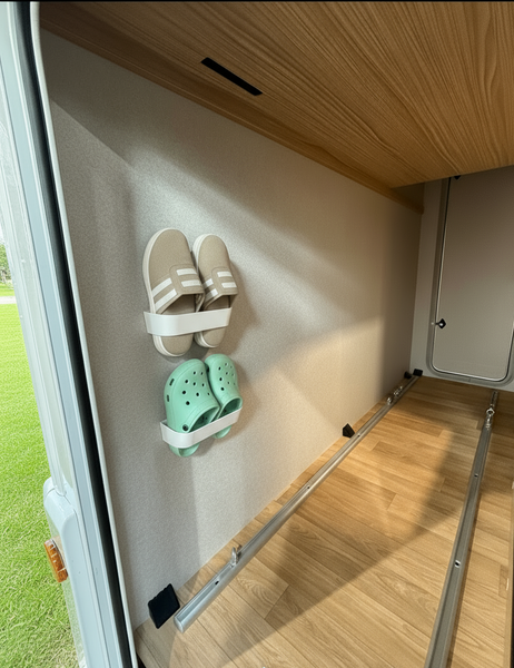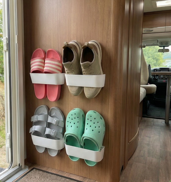 Har du skor som alltid står i vägen? Vår nya skoförvaring är designad för att hantera både foppatofflor och joggingskor – perfekt när du vill frigöra golvyta i husbilen, husvagnen, hallen där hemma eller i stugan.